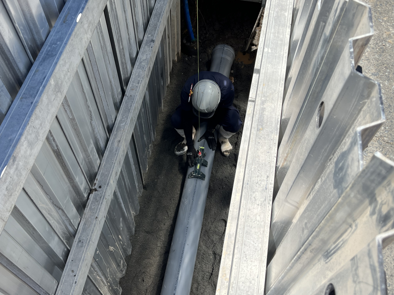 掘削時には、湧水がありましたが適切な処置を行い、安全に作業を行いました。